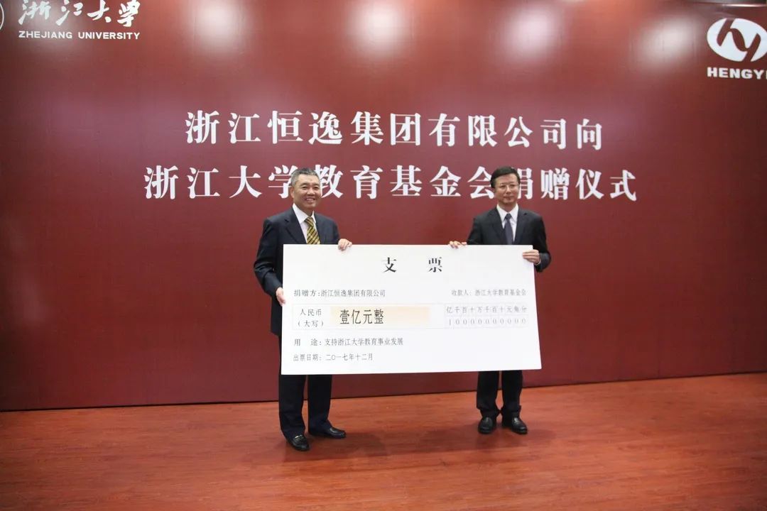 2017年12月,恒逸集团向浙江大学教育基金会捐赠人民币一亿元,助推浙江大学“双一流”建设