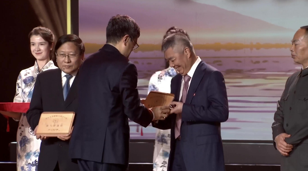 在浙江大学迎来125周年校庆之际,恒逸集团再次慷慨捐赠5000万元,助力浙大“双一流”建设。晚会中,浙江大学校党委书记任少波为邱建林等捐赠方代表颁发捐赠致谢牌。