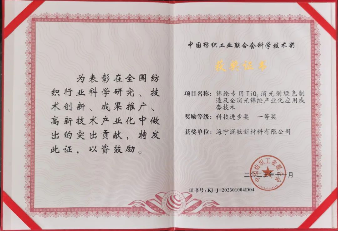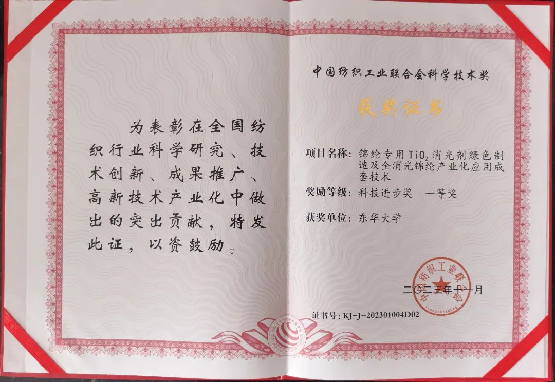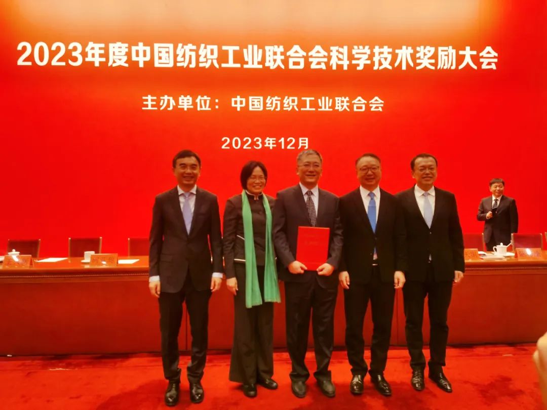 12月6日上午,2023年度中国纺织工业联合会科学技术奖励大会在北京人民大会堂举行。恒逸《锦纶专用TiO2消光剂绿色制造及全消光锦纶产业化应用成套技术》荣获2023年度中国纺织工业联合会科技进步奖一等奖,恒逸石化常务副总裁、研究院院长王松林代表项目团队上台接受表彰。
