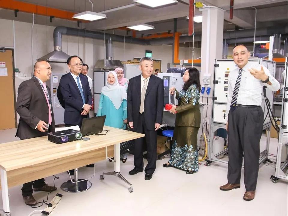 捐赠仪式后,在文莱大学副校长拿汀阿尼塔的陪同下,邱建林还参观了文莱大学综合技术中心和高级材料及能源科学中心。
