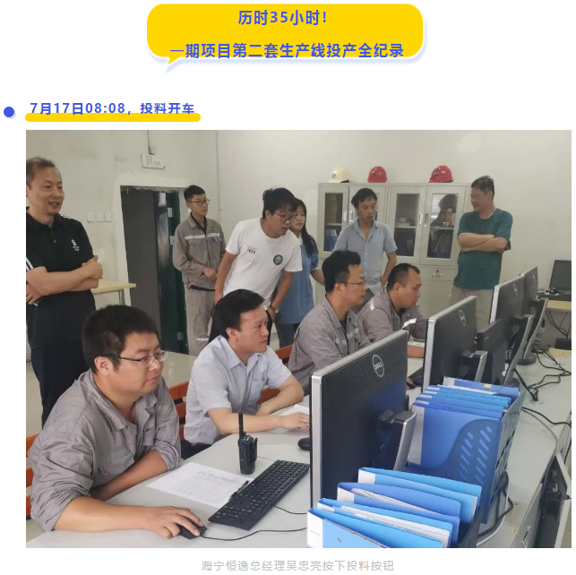 一期项目第二套生产线F线从第一根桩打入,到第一幢生产车间土建结顶,到第一套反应釜吊装,再到第一台卷绕机进场安装,每一项工作每一个环节都包含了海宁恒逸人的倾力付出,大家为了顺利投产不眠不休,为了攻关难题加班加点,为了招聘员工外出奔忙……每个人都在为实现海宁恒逸高质量发展蓝图添砖加瓦。
