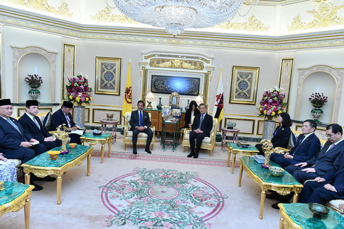 文莱苏丹哈桑纳尔表示,文方愿以庆祝两国建交30周年为契机,对接文方“2035宏愿”和中方“二〇三五年远景目标”,加强农业、渔业等领域合作,推进恒逸石化、“广西—文莱经济走廊”等重大项目建设,深化两国战略合作伙伴关系。文方愿发挥作为东盟轮值主席国的作用,促进东盟中国互信合作,维护地区和平稳定。