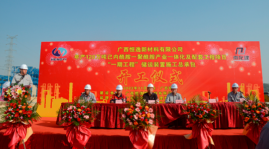 11月28日,广西恒逸新材料有限公司年产120万吨己内酰胺—聚酰胺产业一体化及配套工程项目储运装置施工总承包工程正式开工。