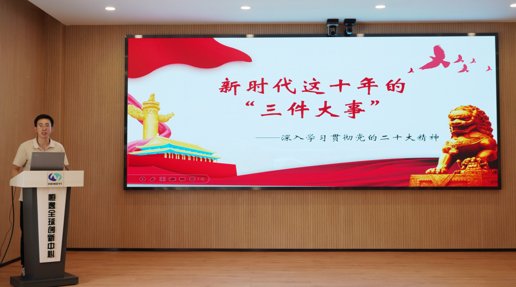 结对仪式后,陈维伟为现场党员开展主题教育活动宣讲。浙江大学化学系有机与药物化学研究所研究生第二党支部一行还参观了恒逸研究院实验室和展厅,全方位了解恒逸科技创新工作。