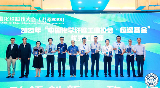 6月15日,2023中国化纤科技大会在江苏洪泽开幕。会上,2023 年度“中国化学纤维工业协会・恒逸基金”杰出科技人才发布。恒逸集团董事长助理、恒逸研究院副院长吕天然受邀出席大会,宣读《2023年“中国化学纤维工业协会·恒逸基金”杰出科技人才授予决定》。