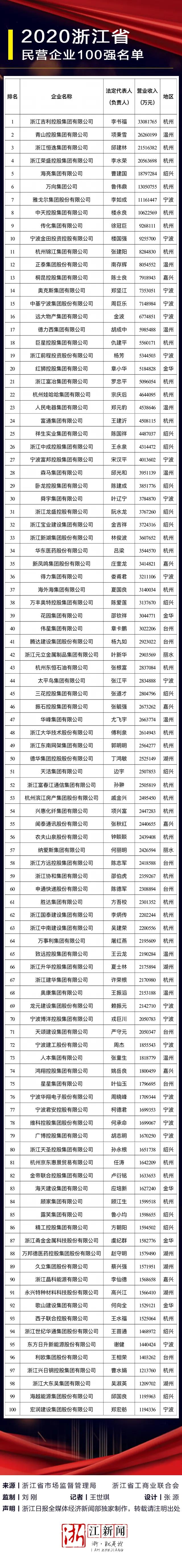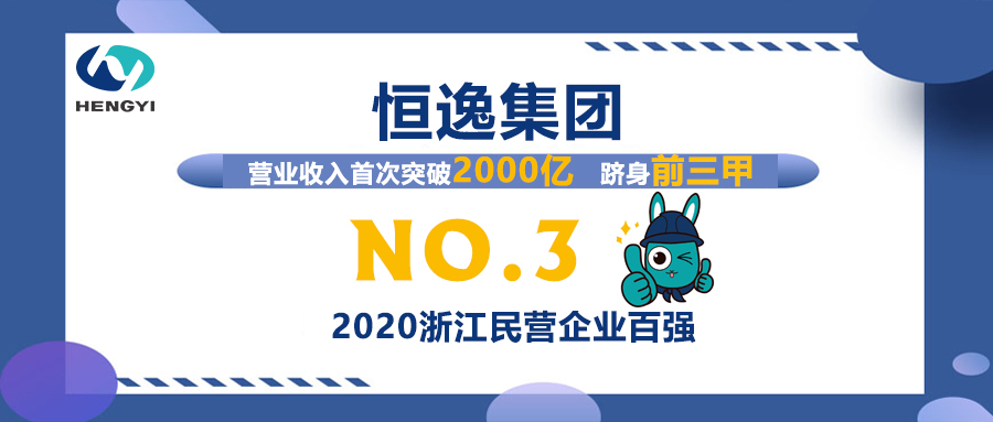 9月3日,浙江省市场监管局、浙江省工商业联合会共同公布了“2020浙江省民营企业100强”榜单。恒逸集团在2019年以2151.64亿元的营业收入跃居第三位,首次“打进”浙江民企百强榜前三甲。据悉,公司已连续13年跻身浙江民企前十强。