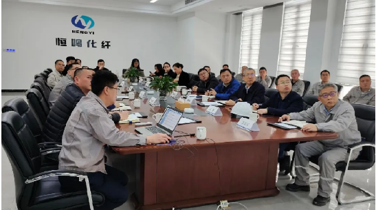 随后,邱奕博一行与恒鸣化纤、逸通新材料管理人员进行座谈,在听取项目施工相关情况汇报后,对重要项目节点与实际问题展开深度交谈。同时,集团各职能负责人分别对项目采购、设备到货、现场安全、人员招聘等问题进行现场答疑,努力寻求解决途径。