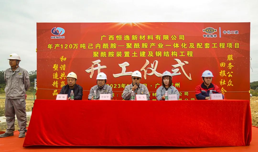 广西恒逸新材料有限公司总经理沈飞,浙江恒逸锦纶有限公司总经理、杭州逸宸化纤有限公司总经理陈毅荷及广西华宇工程监理有限公司、中化二建集团有限公司有关负责人出席开工仪式。