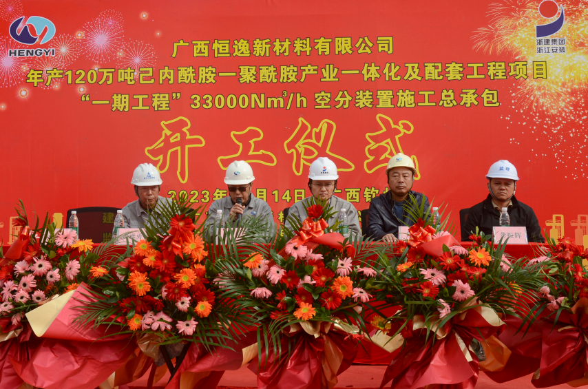 广西恒逸新材料有限公司总经理沈飞等公司领导及广西华宇工程监理有限公司、浙江泰宁建设工程管理咨询有限公司、浙江省工业设备安装集团有限公司等有关负责人出席开工仪式。