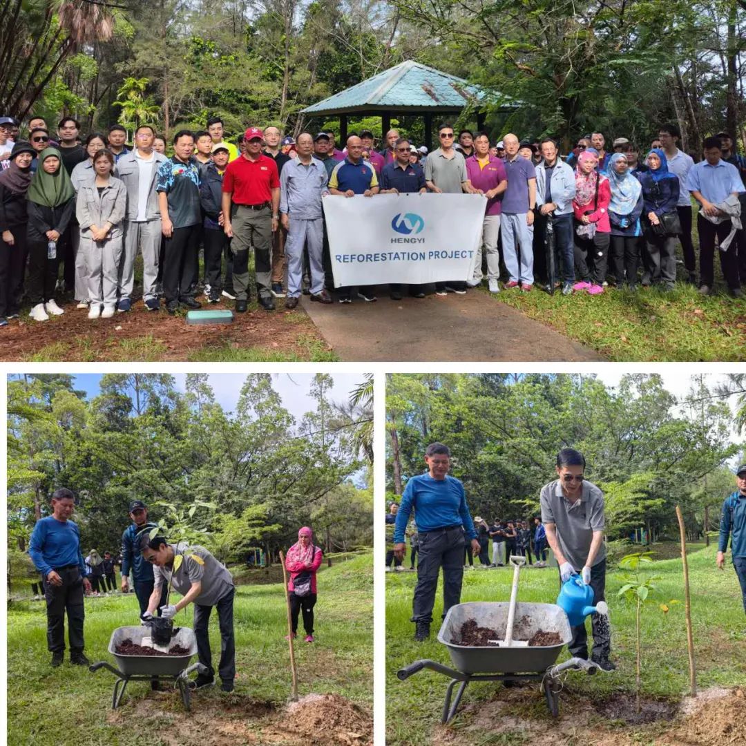肖大使与共同出席活动的文莱发展部长朱安达、首相府能源局副部长阿兹米等,在公司首席执行官陈连财和部分员工的陪同下,一早来到文莱生物多样性公园森林保护区,挥锹铲土、培土浇灌,种下一棵棵树苗。此次活动一共种植了500株树苗。