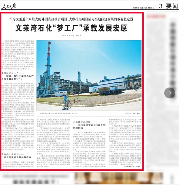 人民日报:文莱湾石化“梦工厂”承载发展宏愿